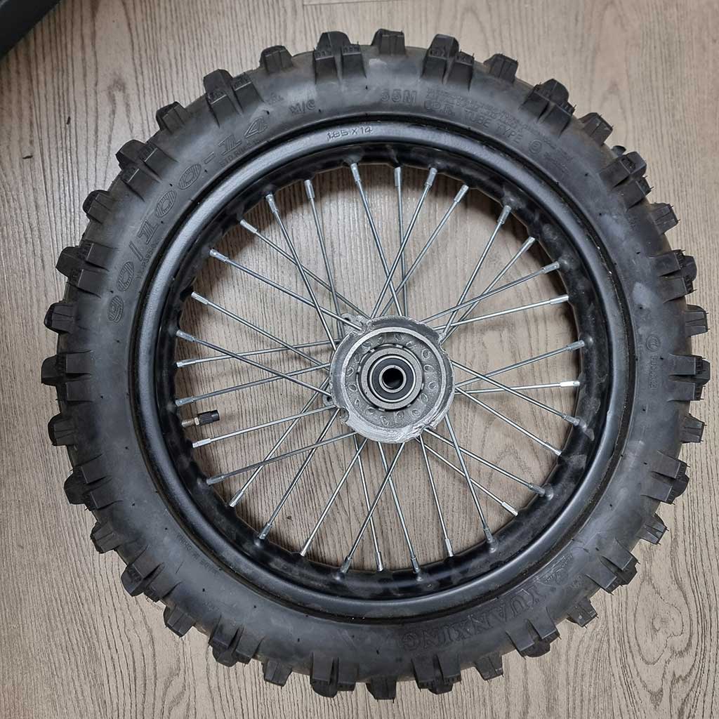 Please Read Before Purchase: These are value wheels built to the same standard used across most UK pit and dirt bikes, and offer exceptional value by including the hub, rim, spokes, tube, tyre, and rim tape as standard. They are designed for typical off-road use, and in some cases are suitable for road-legal bikes, but they are not built to racing-spec standards.