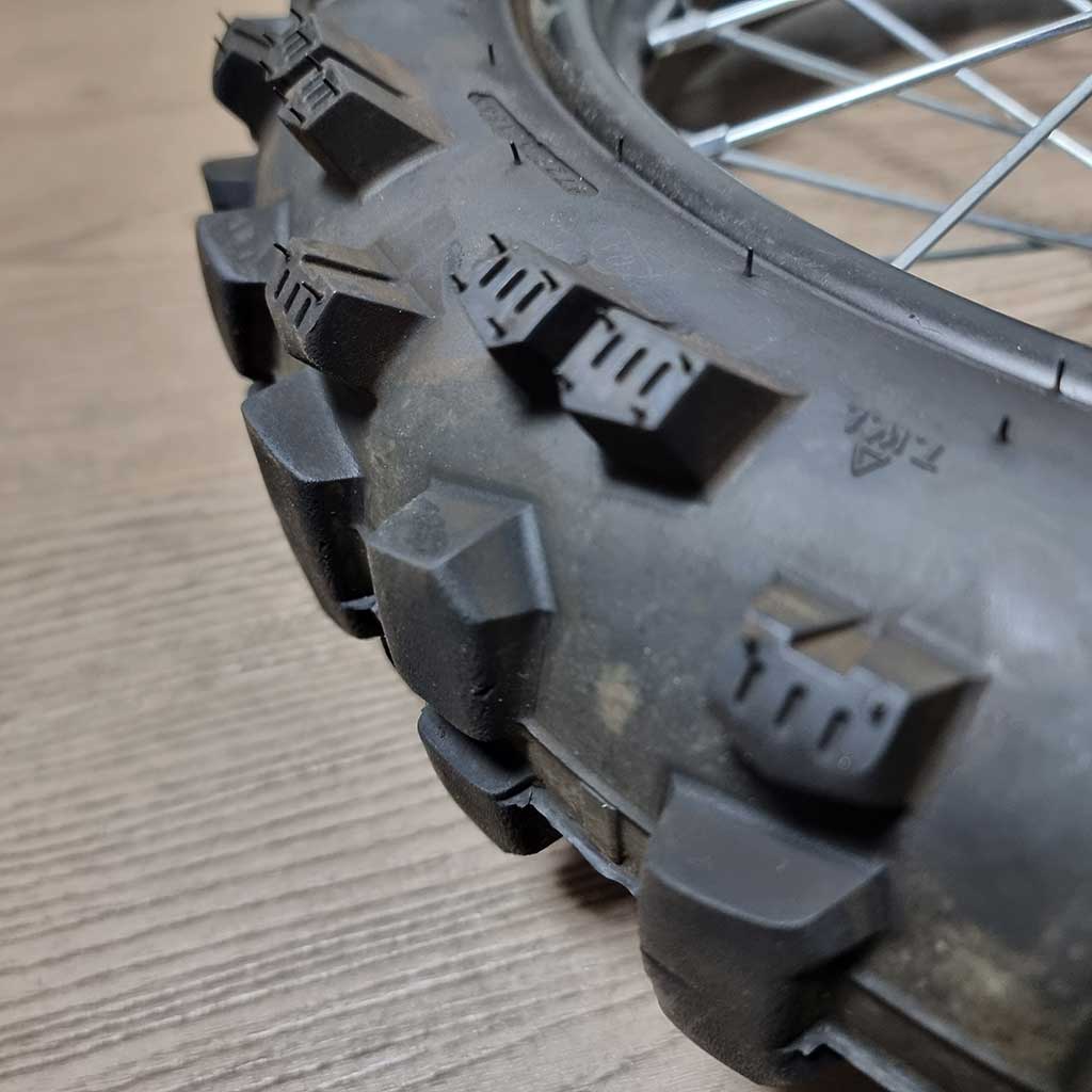 On higher-powered pit bikes (140cc–212cc engines), tyre rotation can still occur even at the correct pressure. To prevent this, we recommend fitting a rear rim lock (e.g. Wheel Rim Lock – 1.85, part no. MXA0289). This requires drilling a hole opposite the valve stem and installing the rim lock inside the tyre before tightening securely.