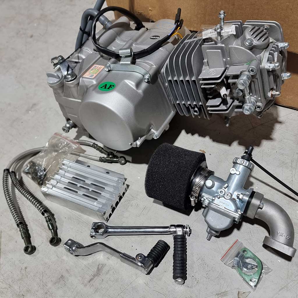 The latest year model 140cc engine from the YX factory, with the factory-fitted Z40 Camshaft upgrade. The YX 140 engine is one of the most popular horizontal lay flat engines in the world, and having had so many slight revisions over the years to tweak this masterpiece closer and closer to perfection, this is, as we would say, one of the strongest and most rider-friendly 140 engines you can put your money into.