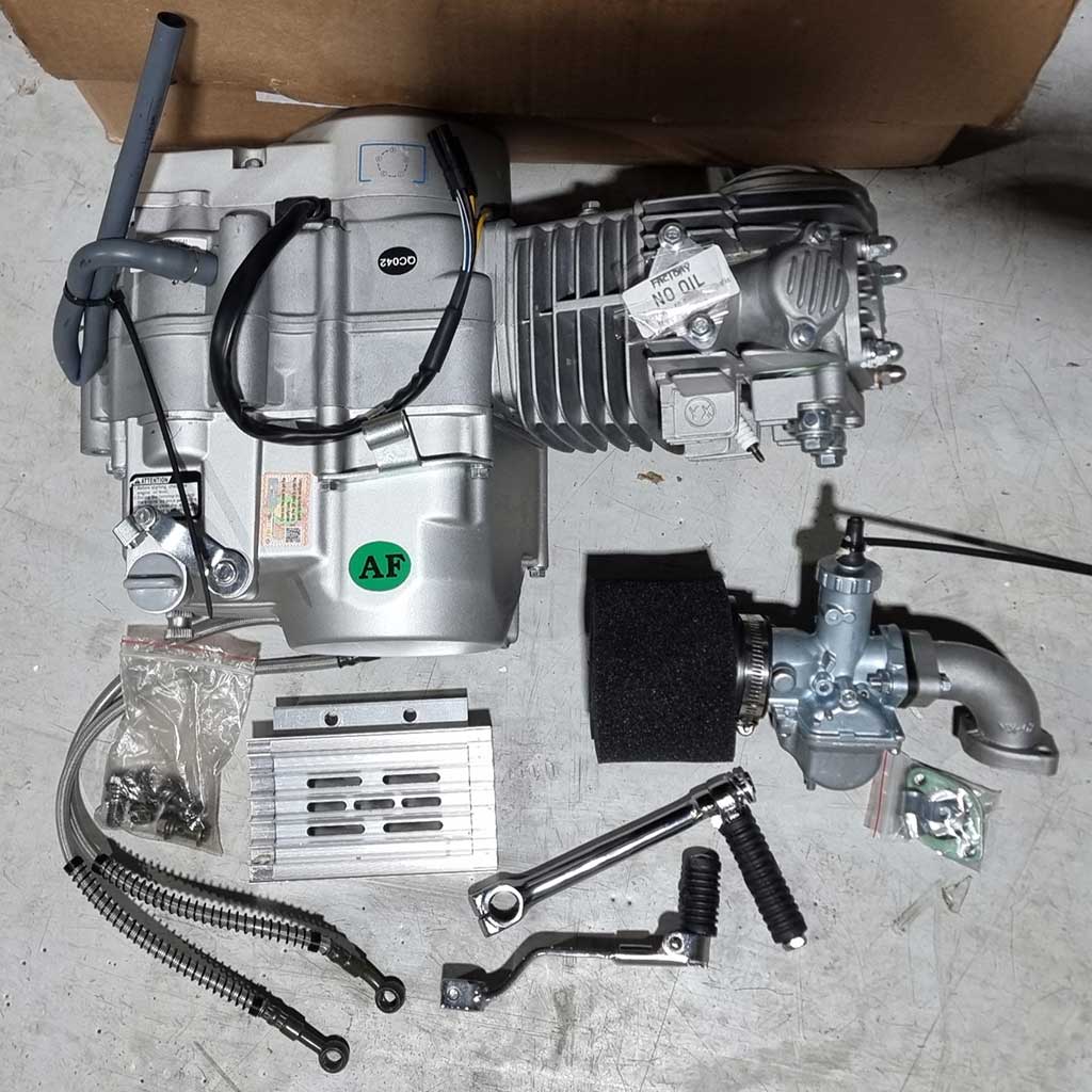 Included: All items in additional pictures, if not shown, it is not included: oil cooler set, kick start, gear lever, VM26 carb, air filter, intake manifold, carb spacer gasket set.